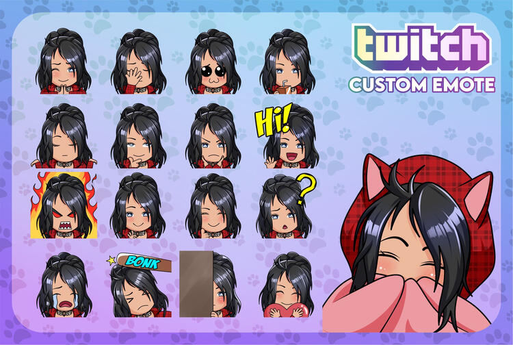 ◉ Chibi Custom Emote, Badge, Sticker.You can see our T.O.S and prices here. Please read carefully, thank you!